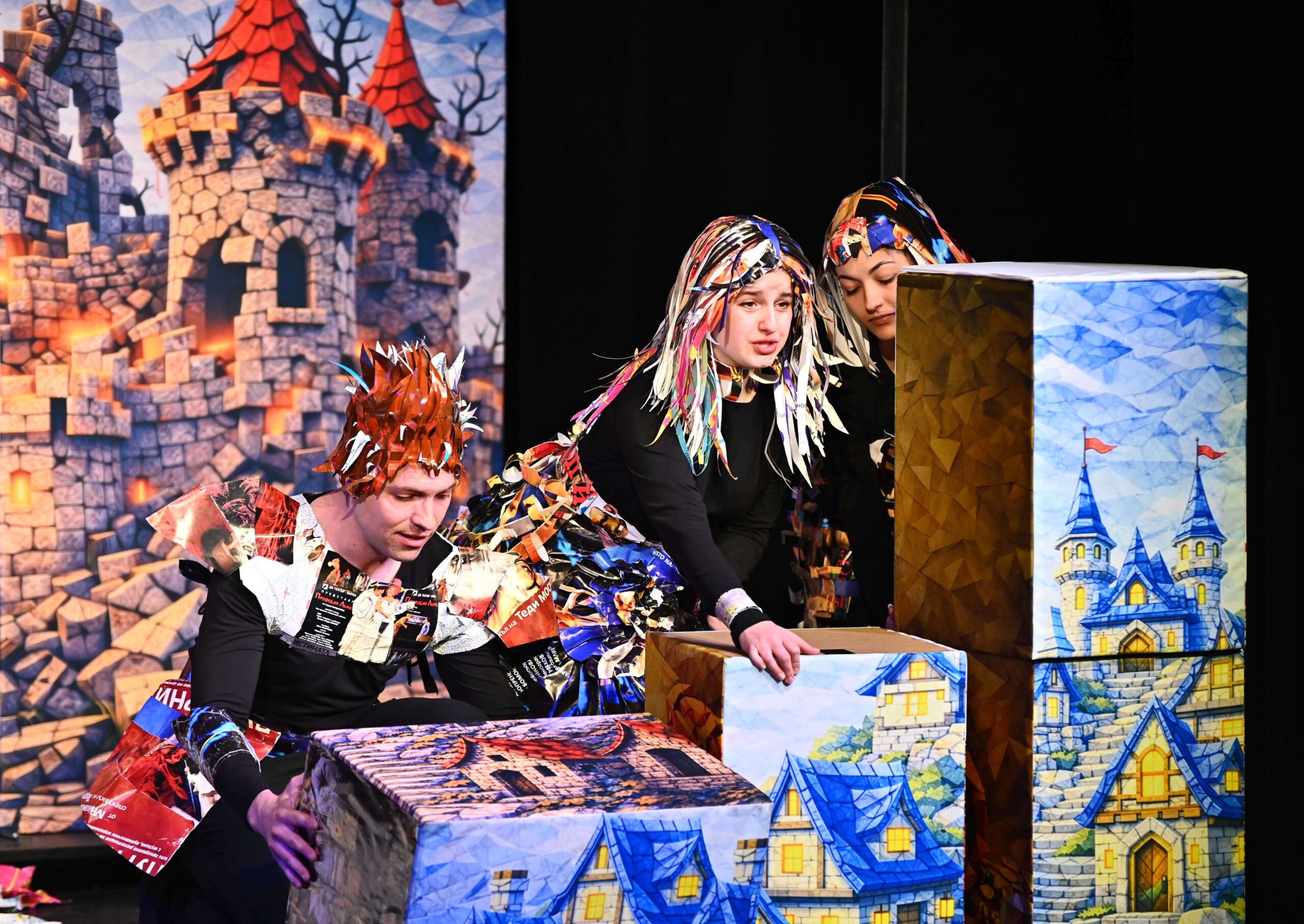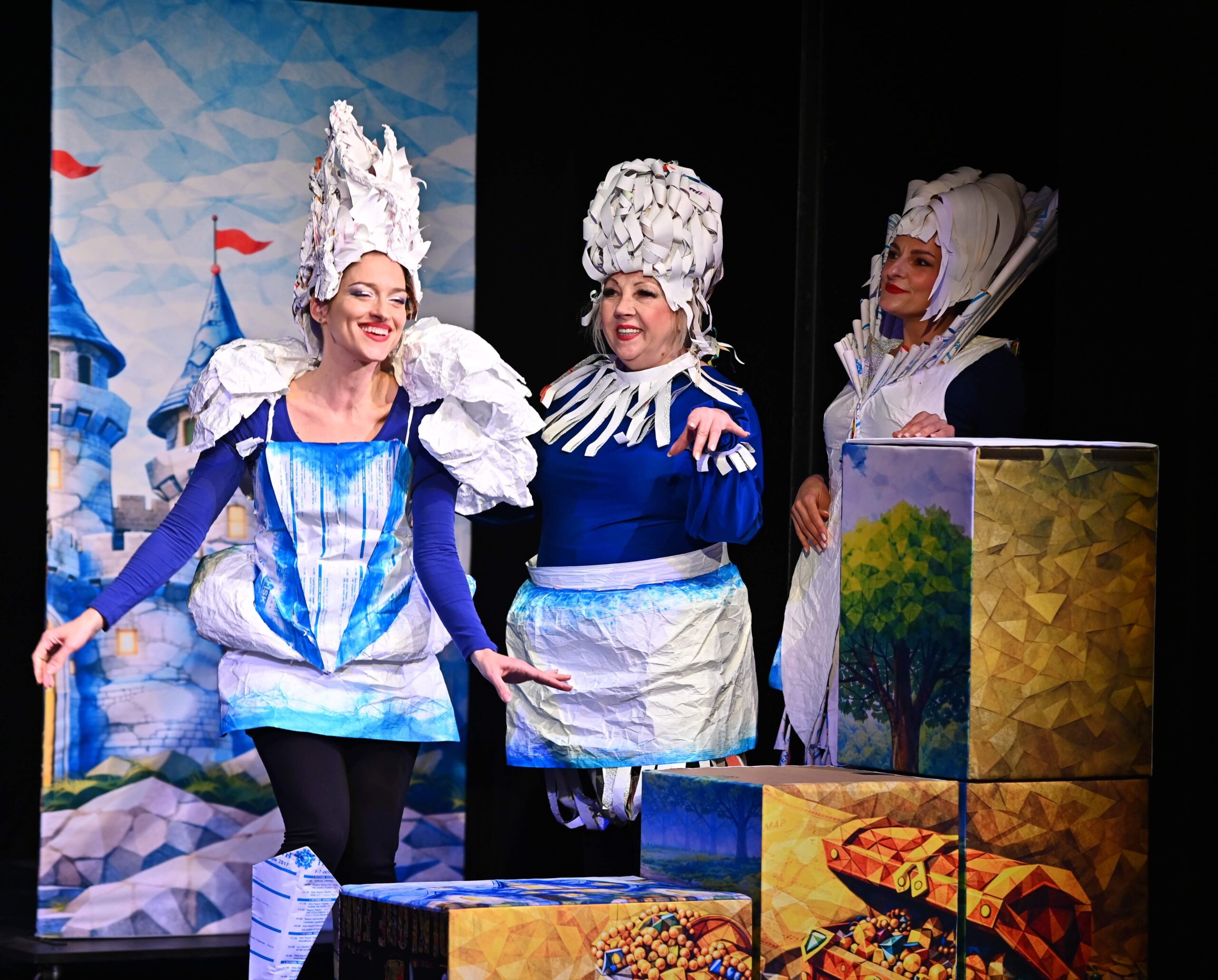 Костюмография: студенти от специалност „Сценография“ НАТФИЗ „Кр. Сарафов“ с ръководител проф. д-р Мира Каланова и гл. асистент д-р Елица Рангелова